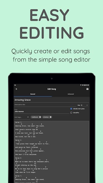 Features include:- All your songs together in one universal digital songbook