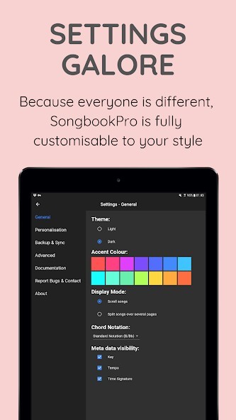 SongbookPro replaces all the hassle of carrying and organizing your chord charts, lyric sheets and songbooks with a simple app on your laptop or tablet.A fantastic tool for guitarists, bassists, vocalists or anybody using chord charts, lyrics, sheet music or heavy songbooks, SongbookPro easily allows you to get rid of all that paper by displaying your music in a flexible, easy to read format.