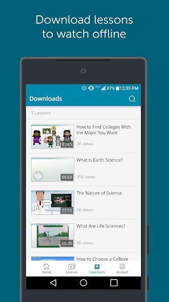 • Download video lessons to your phone to watch offline