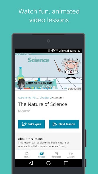 The Study.com app will help you learn any academic subject on the go.