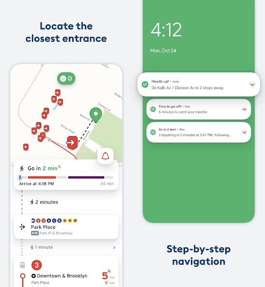 - Voice reminders to start walking to your stop, to hurry up (if your bus or subway is arriving early) and where to get off